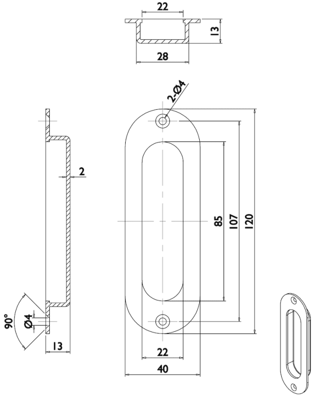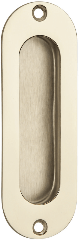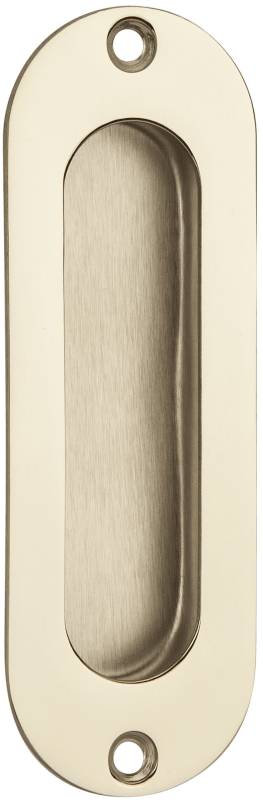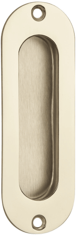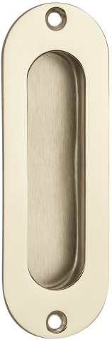 Schiebetürmuschel 3673 ohne Lochung, 120 x 40 mm, abgerundet, mit 2 Anschraublöcher, Mindestfräßmass: 94 x 28 x 11 mm, Oberfl. 18 (PVD Messingfarben)