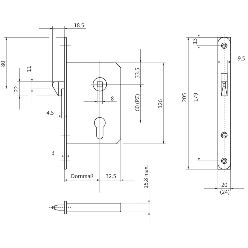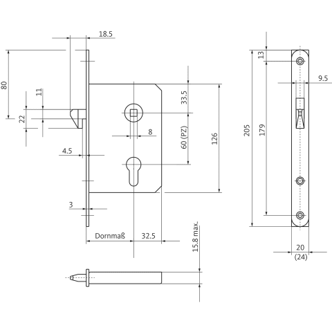 BKS Schiebetürschloss 0375; Produkttyp: Schiebetürschloss; Produkttyp (Hersteller): Schiebetürschloss; Ausführung: mit Hakenfalle; Stulpform: Flachstulp; Material Stulp: Stahl; Schlosskastenhöhe: 126
