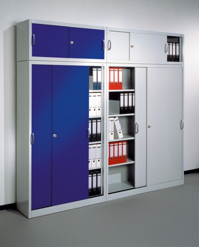 CP Schiebetürenschrank B1600xT400xH1950 mm RAL 7035 8 Fachböden