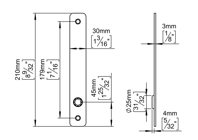 Knud Holscher Kollektion, Rückenplatte AE, 210x30x3mm, f/ASSA. Hergestellt aus hochwertigem, rostfreiem Edelstahl AISI 316, der vor starker Korrosion schützt. 20 Jahre Garantie.