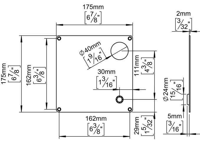 Knud Holscher Kollektion, Rückenplatte CH, LH, x=111mm, 175x175x2mm, mit Kugellager. Hergestellt aus hochwertigem, rostfreiem Edelstahl AISI 316, der vor starker Korrosion schützt. 20 Jahre Garantie.