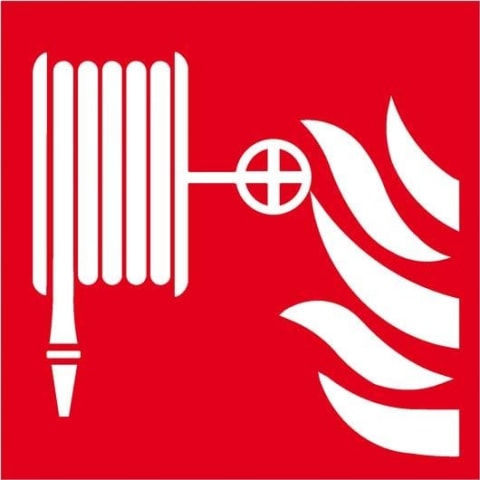 Brandschutzschild, Löschschlauch • ASR A1.3 F002 • DIN EN ISO 7010 F002 • Langnachleuchtend, DIN 67510-4 Unterklasse C
