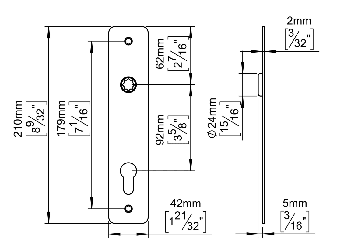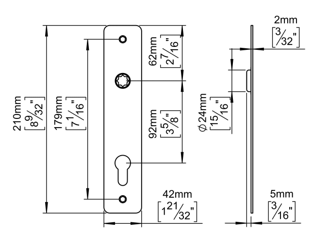 Knud Holscher Kollektion, Rückenplatte KA,x=92mm, f/DIN, 210x42x2mm. Hergestellt aus hochwertigem, rostfreiem Edelstahl AISI 316, der vor starker Korrosion schützt. 20 Jahre Garantie.