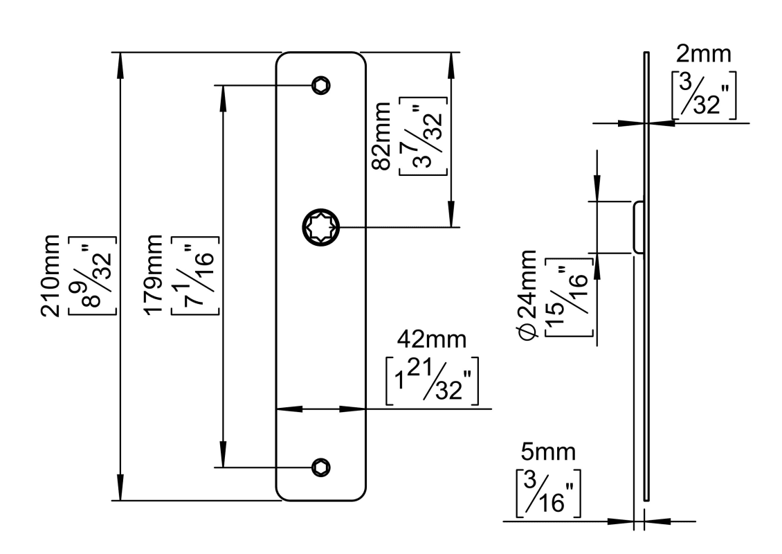Knud Holscher Kollektion, Rückenplatte, mit Kugellager, f/DIN, 210x42x2mm. Hergestellt aus hochwertigem, rostfreiem Edelstahl AISI 316, der vor starker Korrosion schützt. 20 Jahre Garantie.