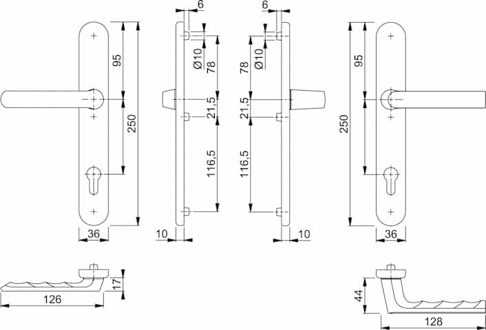 HOPPE Drückergarnitur Hamburg 099KH/3357N/1700FA, Langschild oval, Profilzylinder gelocht, Entfernung 92mm, Vierkant 8, DIN Links-Rechts, Türstärke 72 - 82mm, mit Stütznocken, schwarz matt eloxiert, w