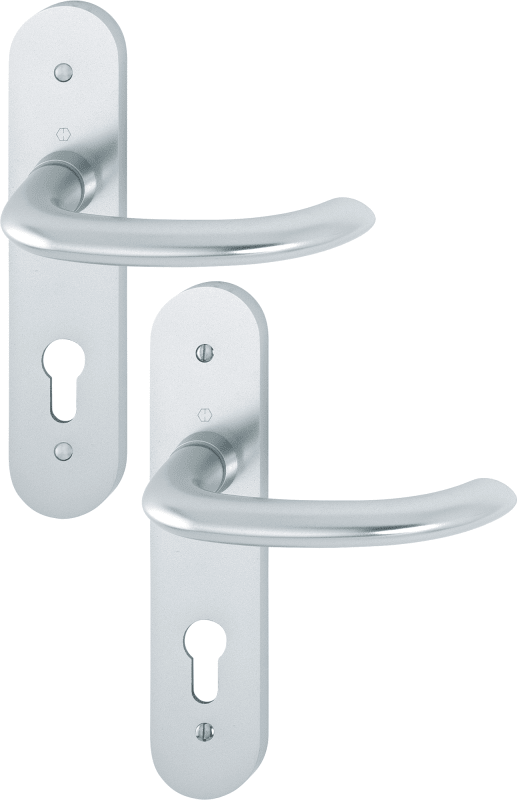 HOPPE Drückergarnitur Marseille 1138/3056RF-3, Langschild, oval, Profilzylinder gelocht, Entfernung 72mm, Vierkant 8mm, DIN Links-Rechts, Türstärke 40 - 40mm, ohne Stütznocken, naturfarben eloxiert, m