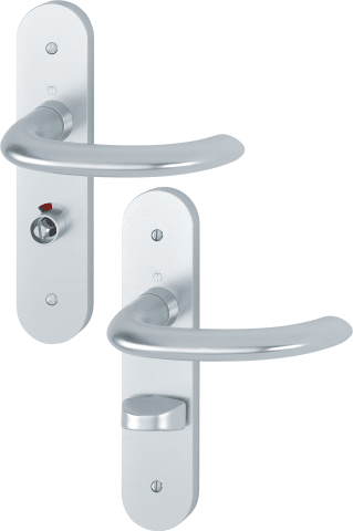 HOPPE Drückergarnitur Marseille 1138/3056RF-3, Langschild, oval, WC Schauscheibe/Schlitzkopf, Entfernung 63mm, Vierkant 8mm, Riegel-Vierkant 8mm, DIN Rechts, Türstärke 40 - 40mm, ohne Stütznocken, nat