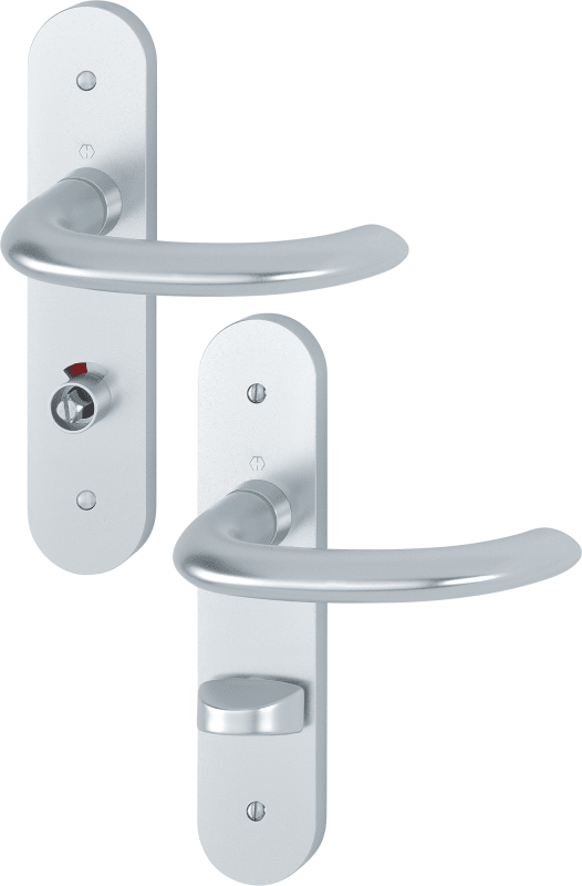 HOPPE Drückergarnitur Marseille 1138/3056RF-3, Langschild, oval, WC Schauscheibe/Schlitzkopf, Entfernung 72mm, Vierkant 8mm, Riegel-Vierkant 8mm, DIN Rechts, Türstärke 40 - 40mm, ohne Stütznocken, nat