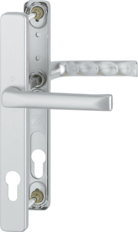 HOPPE® Drückergarnitur London 113KH/2246/113; Material: Aluminium; Befestigungsart: innen sichtbar verschraubt; Befestigungstechnik: mit Stütznocken; Vierkant: 8 mm; Abdeckung: Schmalschild; Form: eck