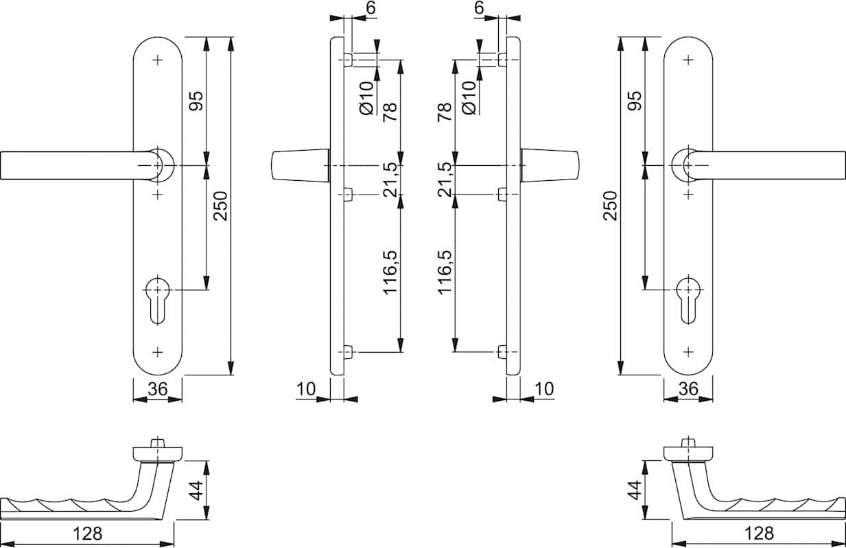 HOPPE Drückergarnitur Hamburg 1700FA/3357N, Langschild oval, Profilzylinder gelocht, Entfernung 92mm, Vierkant 8, DIN Links-Rechts, Türstärke 72 - 82mm, mit Stütznocken, schwarz matt eloxiert, wartung