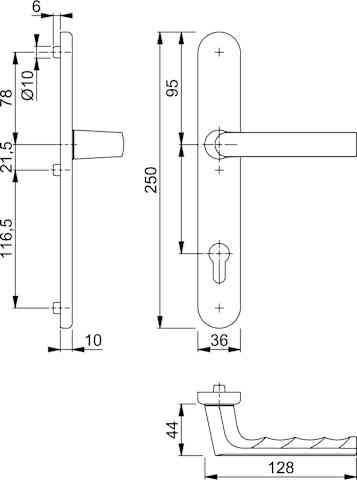HOPPE Halbgarnitur Hamburg 1700FA/3357N, innen, Langschild oval, Profilzylinder gelocht, Entfernung 92mm, Vierkant 8, DIN Links-Rechts, mit Stütznocken, schwarz matt eloxiert, wartungsfreies Gleitlage