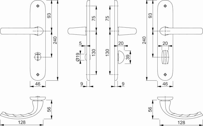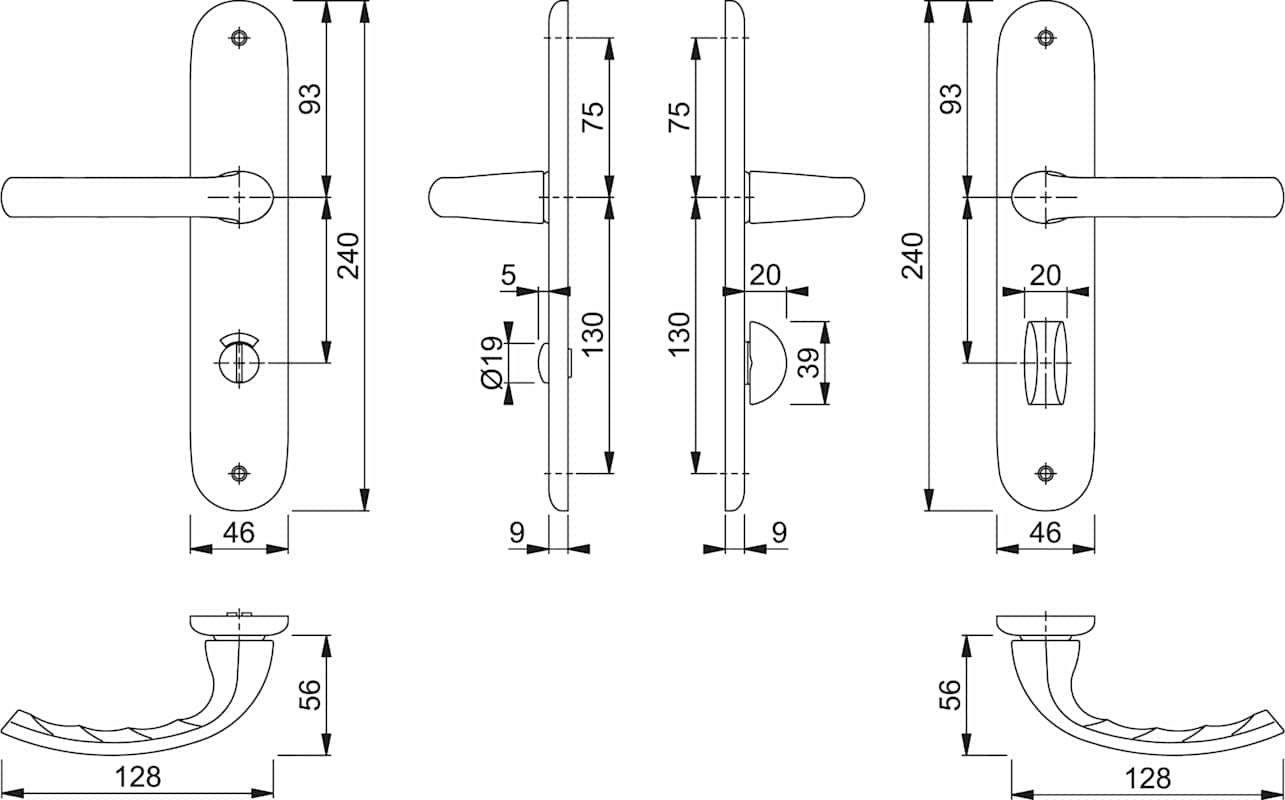 HOPPE Drückergarnitur Tokyo 1710/273P, Langschild, oval, WC Schauscheibe/Schlitzkopf, Entfernung 63mm, Vierkant 8mm, Riegel-Vierkant 8mm, DIN Links-Rechts, Türstärke 37 - 42mm, ohne Stütznocken, natur