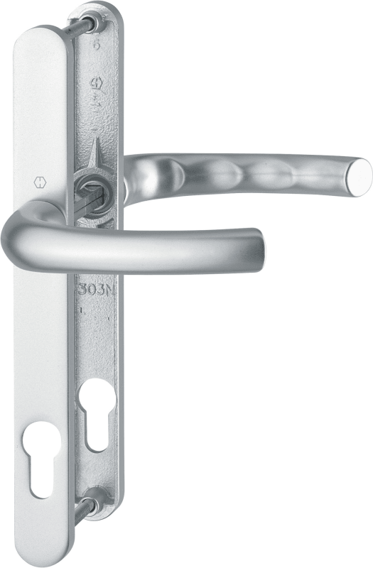 HOPPE Drückergarnitur Tokyo 1710RH/303N, Langschild, oval, Profilzylinder gelocht, Entfernung 92mm, Vierkant 8mm, DIN Links-Rechts, Türstärke 58 - 62mm, mit Stütznocken, naturfarben eloxiert, wartungs