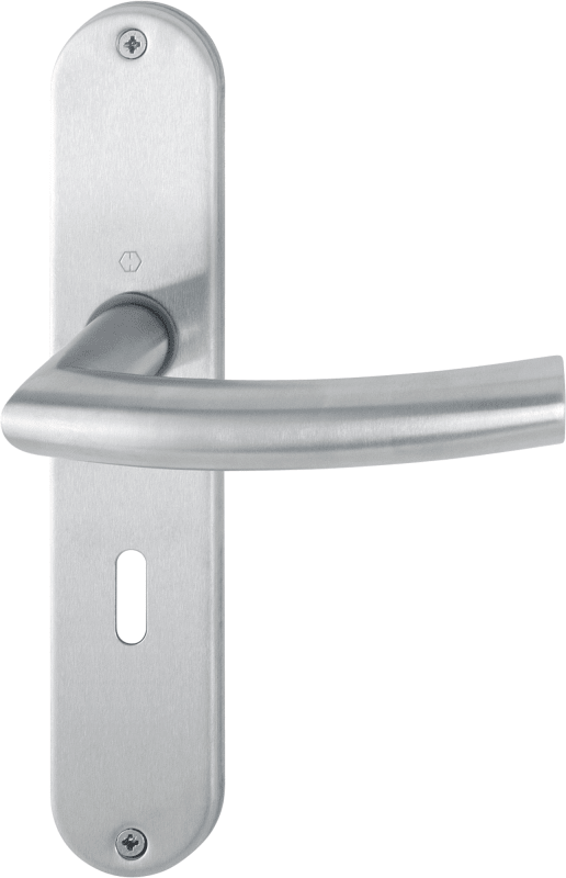 HOPPE Drückergarnitur Trondheim E1430Z/302, Langschild, oval, Buntbart gelocht, Entfernung 56mm, Vierkant 8mm, DIN Links-Rechts, Türstärke 35 - 45mm, ohne Stütznocken, edelstahl matt, wartungsfreies G