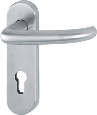 HOPPE® Drückergarnitur San Francisco FS-E1301/353KH; Abdeckung: Kurzschild; Form: oval; Vierkant: 9 mm; Material: Edelstahl; Befestigungstechnik: mit Stütznocken; Befestigungsart: verdeckt verschraubt