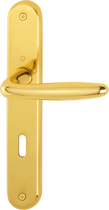 HOPPE Drückergarnitur Roissy M1941/332P, Langschild, oval, Buntbart gelocht, Entfernung 72mm, Vierkant 8mm, DIN Links-Rechts, Türstärke 34 - 63mm, ohne Stütznocken, messing poliert, festdrehbar