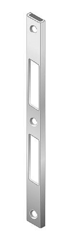 U- Profil- Schließblech für Rundbolzen, Euro- Nut 7/ 8 x 4 mm, 11 mm Falzluft, 16 mm Stulpbreite, Guß- Endkappen mit Führungsnocken. Schließleisten, andere Ausführungen und Oberflächen lieferbar. Links und rechts verwendbar.