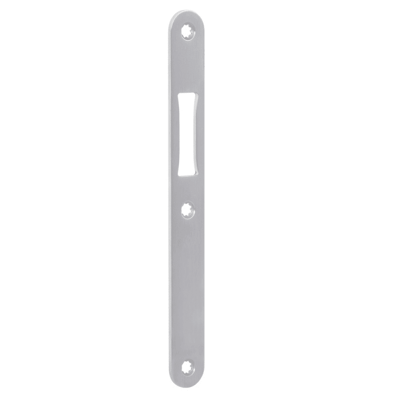 BKS Flachschließblech B-90000; Produkttyp: Flachschließblech; Produkttyp (Hersteller): Flachschließblech; Ausfräsung: mit Fallenausschnitt; Material: Edelstahl; Einsatzbereich: Türrahmen; Form: rund;