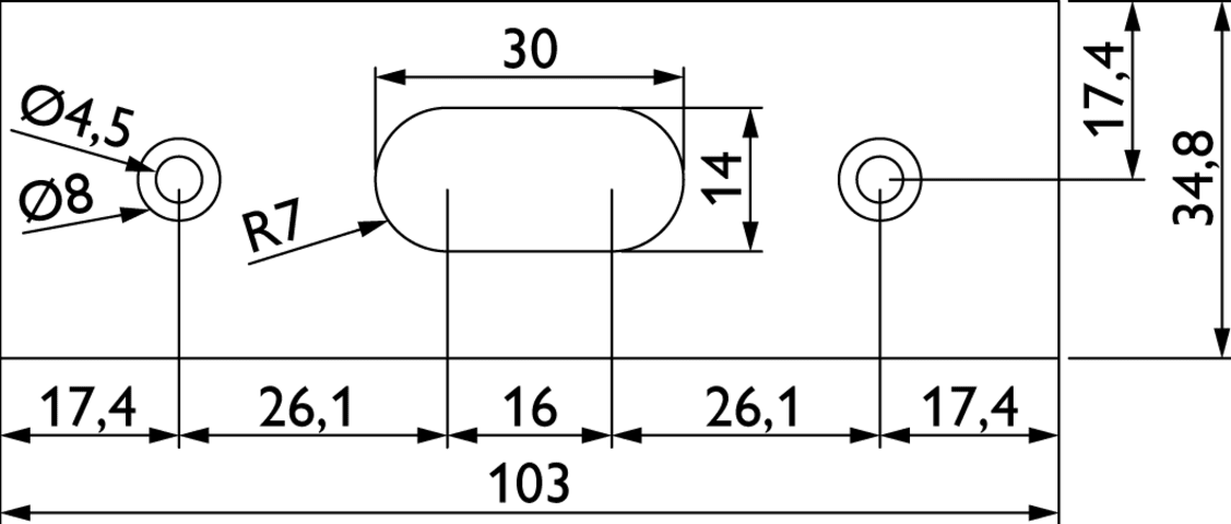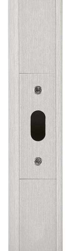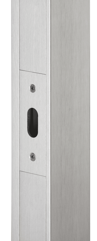 Schließblech für Pfostenprofil 9179 Holz, mit Fräsung 30 x 14 mm, für Holz-Schiebetürschloss mit Zirkelriegelfalle, 103 x 35 mm, Oberfl. F1 (silberfarben eloxiert)