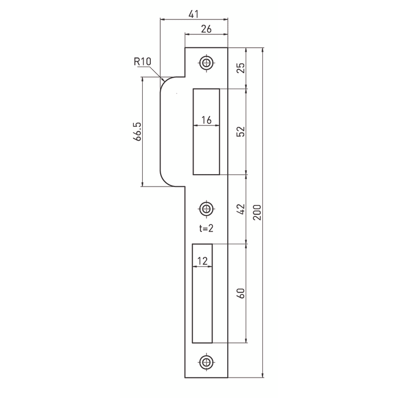 BMH Haustür-Lappenschließblech Nr. S24, kantig. Lieferbare Oberflächen: silberfarbig lackiert (Standard), Messing, Edelstahl.