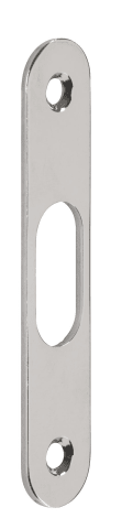 Schließblech zu Schiebetürschloss 3656, 90 x 18 x 2 mm, mit Oval - Lochung 27,2 x 13 mm, Oberfl. 20 (Mattnickel)