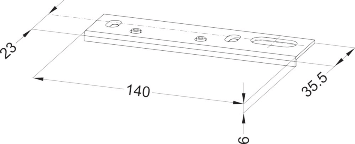 WINKHAUS Schließblech STV TV W3402; Ausführung: für Kantriegel; Material: Stahl; Tiefe: 6mm; DIN Richtung: DIN Rechts; Basis: Schließblech; Farbton: chromatiert; Länge: 140mm; Breite: 35,5mm; Stärke: 2mm; für Riegeldurchmesser: 9,6mm; Anzahl Schraublöcher: 4St.; Oberfläche: matt
