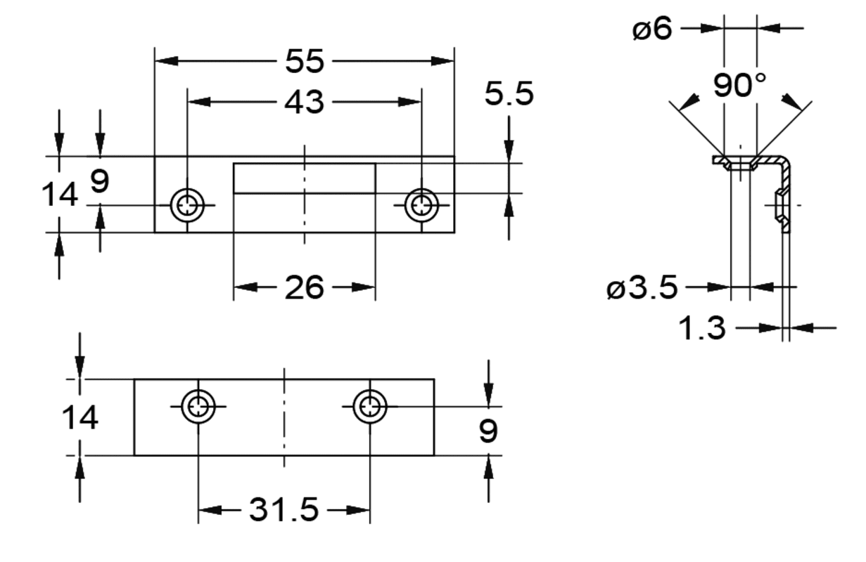 Eigenschaften: • Werkstoff: Stahl • Oberfläche: vermessingt • Schließblechausführung: kantig Technische Daten: • Länge: 55 mm • Breite: 14 mm • Tiefe: 14 mm • Stärke: 1,3 mm