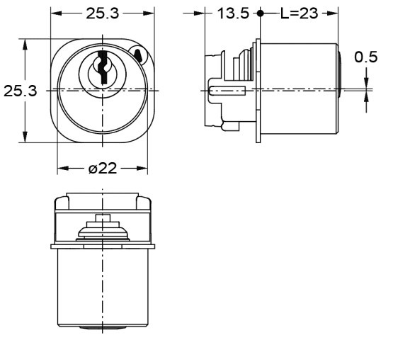 JUNIE, Möbelschloss-Zylinderschließeinsatz, Modell: ASS, Modellnummer: 7538, Montagegegebenheit: Werkstatt, Material Einsatz: Metall, Material Zylinder: Messing, Oberfläche Zylinderkörper: matt vernickelt, Anzahl Zuhaltungen: bis zu 6 St., Breite Rosette: 25,3 mm, Höhe Rosette: 25,3 mm, Zylinderform: rund, Zylinderdurchmesser: 22 mm, Zylinderlänge: 23 mm, Schließbewegung: 360 °, Schließfunktion: verschiedenschließend, Schließtechnik: Stiftzylinder, Einbautiefe: 13,5 mm, Setinhalt (Rosette): 1 St., Setinhalt (Schlüssel): 2 St.