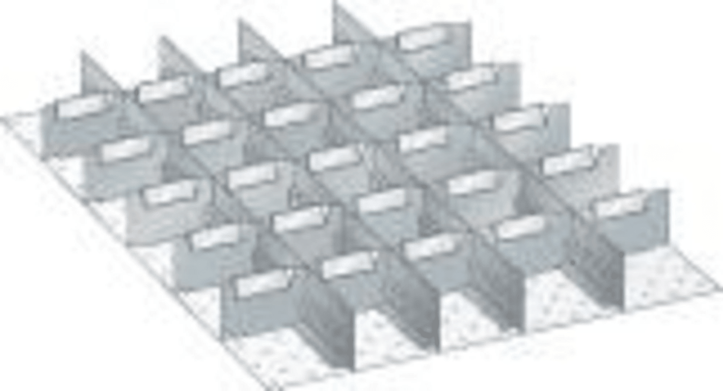 Schlitzwände-Set, 27 x 36, Schubladen-Einteilungsmaterial • Flexible Schubladen-Einteilungsmöglichkeiten • Systematische Ordnung reduziert Suchzeiten, vereinfacht komplexe Arbeitsprozesse und sichert