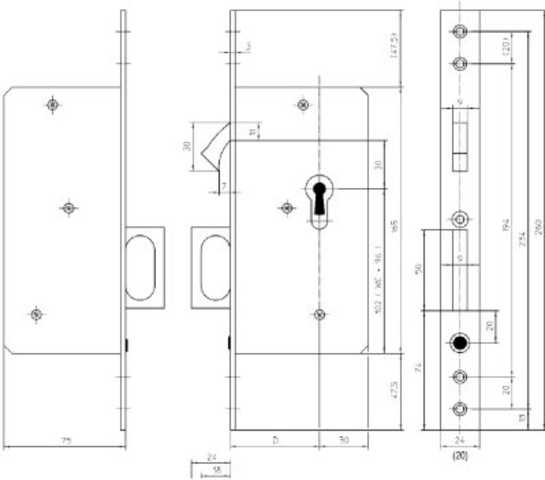 Pendeltür-, Schiebetür-, Glastür-, Fallen-, Riegel- und Spezialschloss für Holztüren 1608-G/---20-A-41