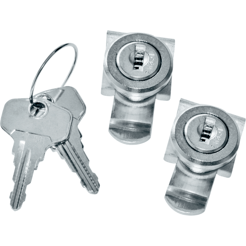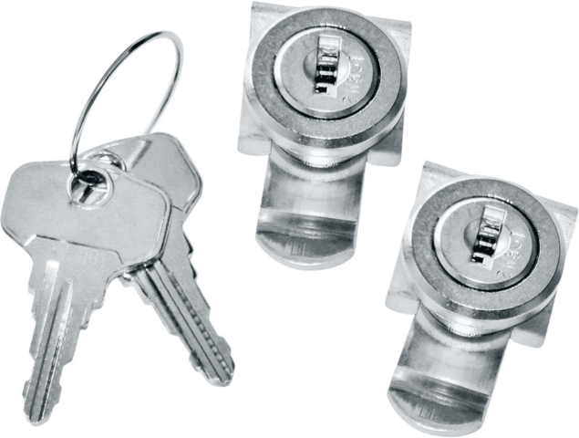 ZARGES Schloss-Set: -Für alle Kisten mit Schlossvorbereitung in Klappverschlüssen. -Bestehend aus 2 Schlössern und 2 Schlüsseln. -Nur im Set gleichschließend.