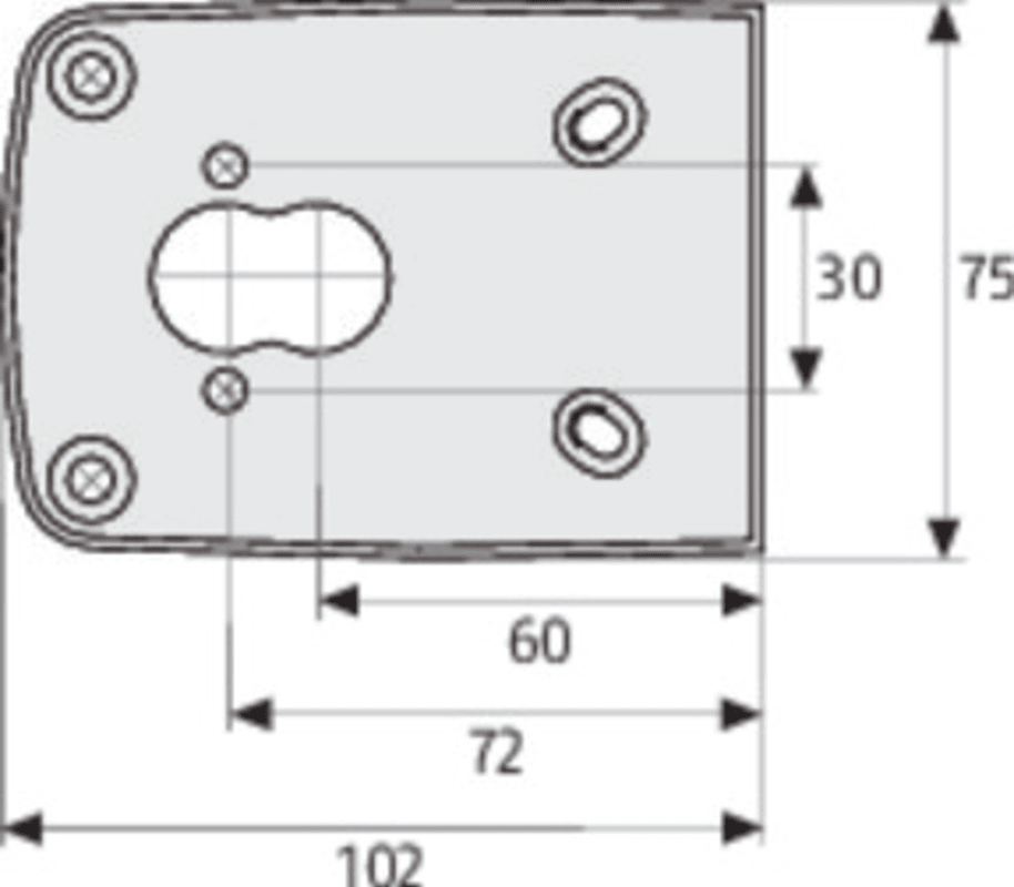 Unterlage für Türzusatzschloss-Serie 7000. Außenzylinder anderer Hersteller können einfach mit den Türzusatzschlössern der 7000 Rim locks of third-party manufacturers can easily combined with the rim