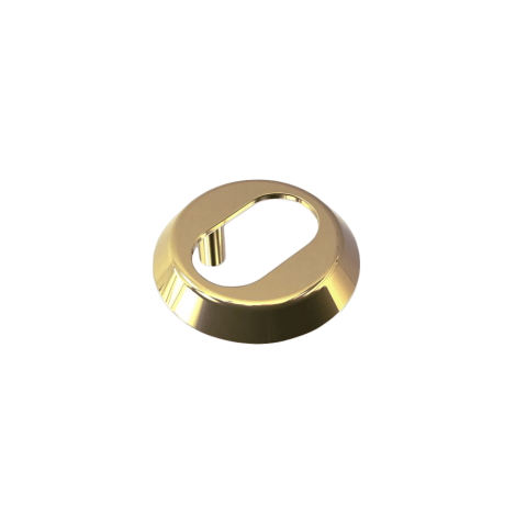 Knud Holscher Kollektion, Zylinderrosette, Außen 8mm, Ø52mm, mit ovaler Zylinderbohrung, cc 30mm aus poliertem Messing. 20 Jahre Garantie.