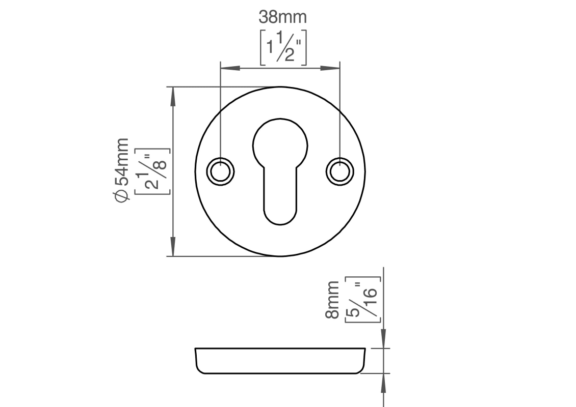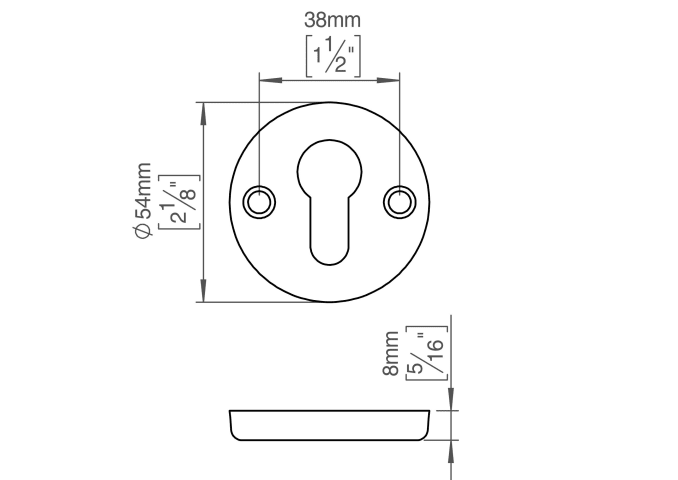Knud Holscher Kollektion, Zyl.-Schild, Innen 8mm, Ø54mm, PZ-Loch, cc 38mm. Hergestellt aus hochwertigem, rostfreiem Edelstahl AISI 316, der vor starker Korrosion schützt. 20 Jahre Garantie.
