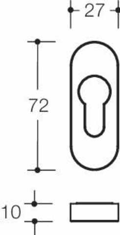 HEWI Schlüsselrosette 316XPPSKN; Produkttyp: Schlüsselrosette; Produkttyp (Hersteller): Schlüsselrosette; Anwendung: innen; Form: oval; Befestigungsart: verdeckt verschraubt; Montageart: aufliegend; Material: Edelstahl; Länge: 72 mm; Breite: 27 mm; Material Unterkonstruktion: Kunststoff-Stahlverbundbau; Einsatzbereich: Tür; Norm: DIN 18273,DIN EN 1125; Türart: Vollblatt; Zulassung: für Fluchttüren,für Rauchschutz,für Feuerschutz; Lochung: Profilzylinder gelocht; Farbe: schwarz; Oberfläche: tiefmatt,pulverbeschichtet; Stütznocken: ohne Stütznocken; Höhe: 10 mm