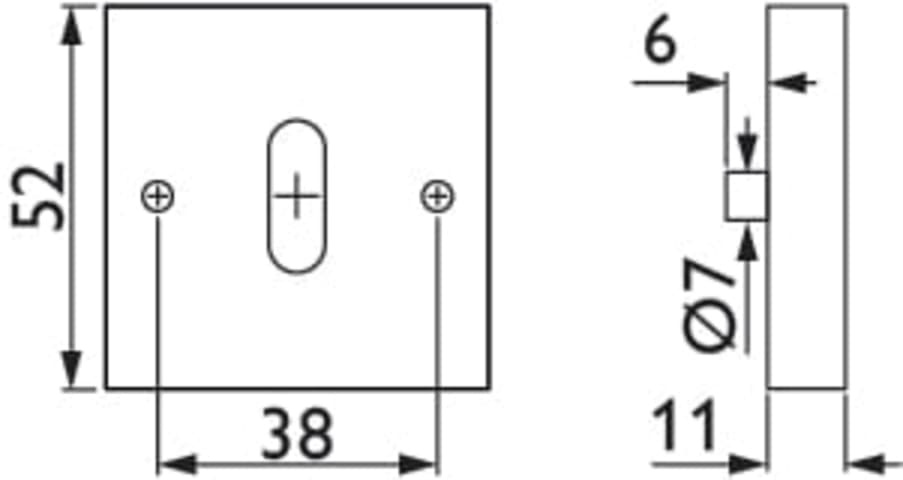 Schlüsselrosette 2011 K BB, mit kantiger Kunststoff-Unterkonstruktion, inkl. Holzschrauben 4 x 50 mm für Tst. 38 - 42 mm, Oberfl. 60 (Edelstahl matt)