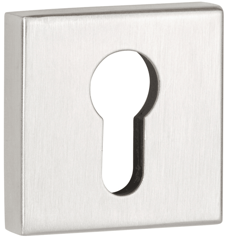 Schlüsselrosette 2011 K PZ, mit kantiger Kunststoff-Unterkonstruktion, inkl. Holzschrauben 4 x 50 mm für Tst. 38 - 42 mm, Oberfl. 60 (Edelstahl matt)
