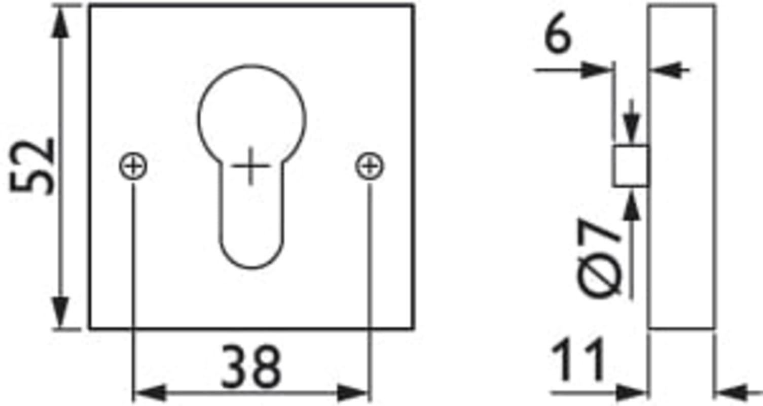Schlüsselrosette 2011 K PZ, mit kantiger Kunststoff-Unterkonstruktion, inkl. Holzschrauben 4 x 50 mm für Tst. 38 - 42 mm, Oberfl. 61 (Edelstahl poliert)