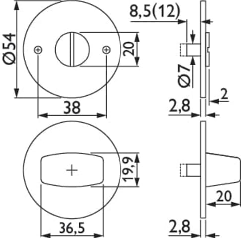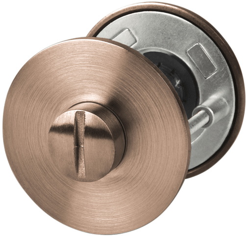 Bad-Rosette 2636 FL inkl. WC-Riegel, mit runder MAGCLIP-Unterk. / Tst. 38 - 45 mm, und WC-Riegel 3221/3216, 6 mm Vierkant, inkl. Hülsen 7+8 mm, Schrauben M4 x 50 mm, Oberfl. 71 (Bronzefarben matt)