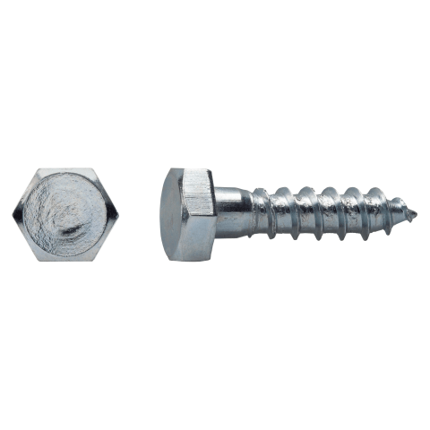 Sechskant-Holzschrauben, DIN 571, galvanisch verzinkt Holzschrauben haben Teilgewinde mit einer Gewindelänge von ca. 0,6 x Gesamtlänge. Der vorzubohrende Kernlochdurchmesser ist je nach Holzart, Materialstärke und Randlochabstand zu wählen. Sie werden verwendet für den Einsatz in Hölzern und als Dübelschrauben zur Befestigung von Bauteilen auf Beton.