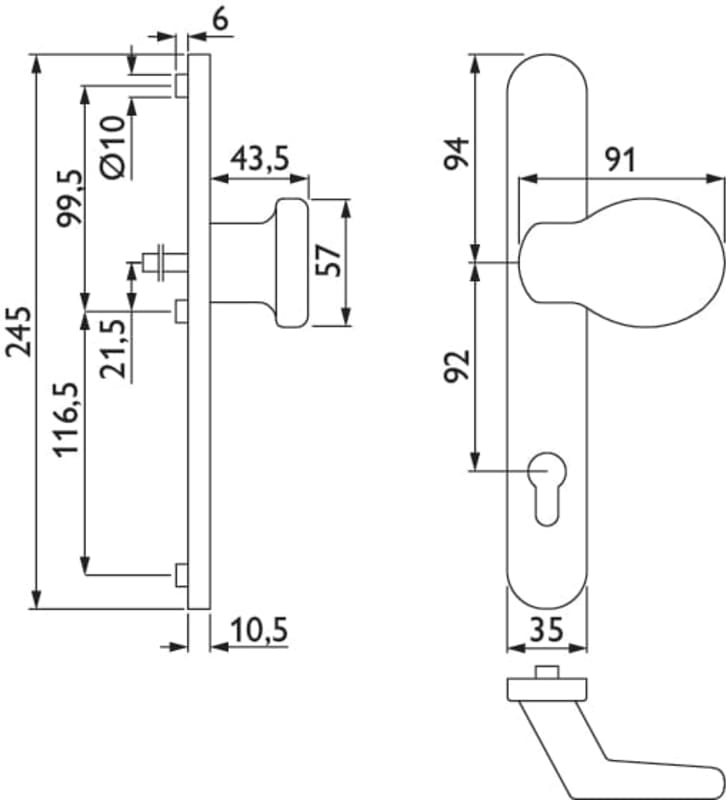 Schmalrahmen-Knopfschild 2082, mit Knopf 3132 gekröpft, Ausf.: 92 mm PZW, ohne Befestigungsmaterial / Schild mit Gewindenoc, Oberfl. 36 (Braun beschichtet ähnlich RAL 8019)