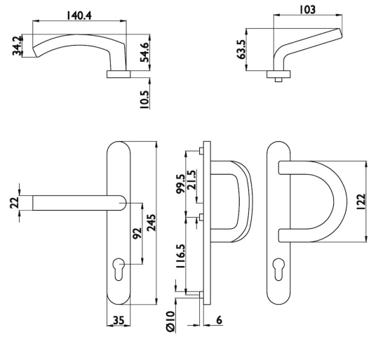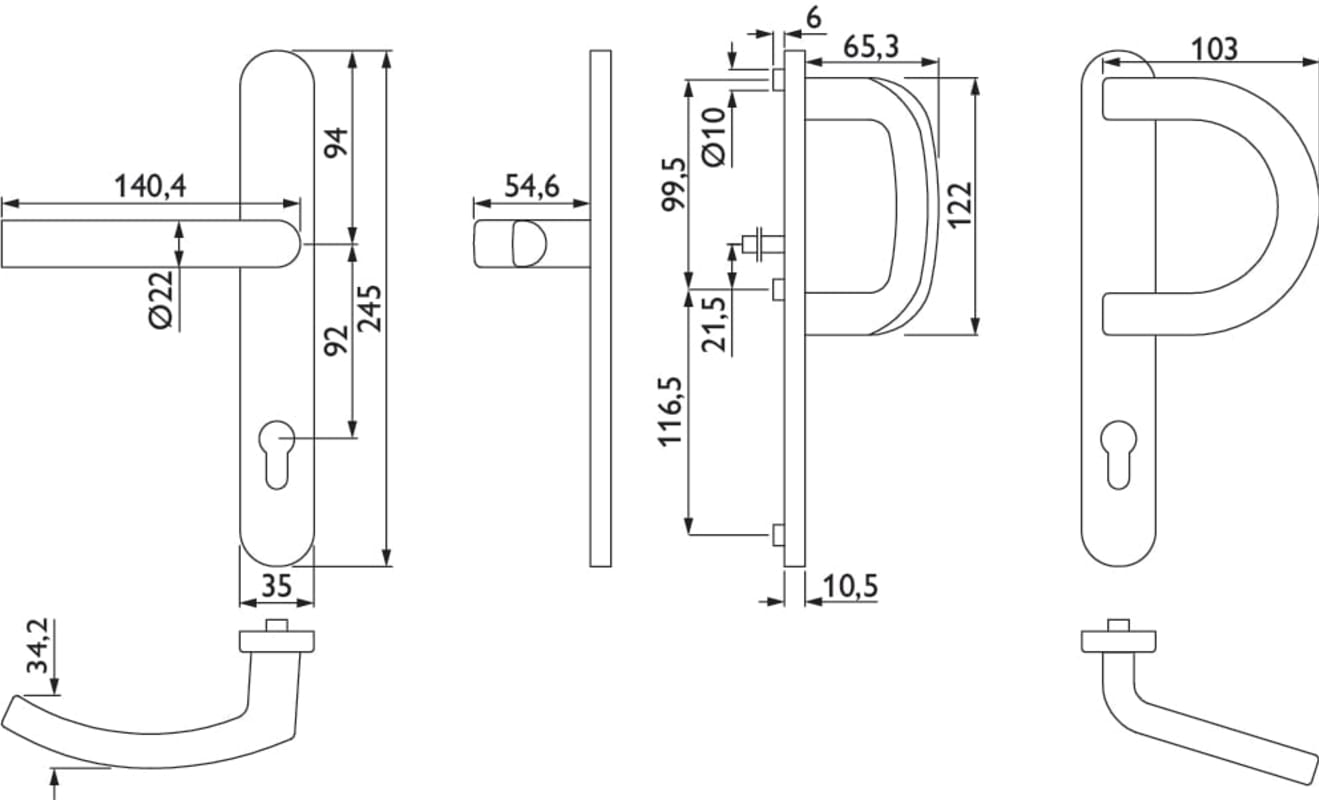 Schmalrahmen-Wechselgarnitur 1955, mit Schild 2082, fest/drehbar mit Hochhaltefeder, Ausf.: 92 mm PZW, mit Griff 3133 halbrund, ohne Befestigungsmaterial, Oberfl. 36 (braun beschichtet ähnlich RAL 801