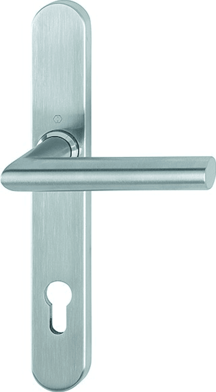 HOPPE Halbgarnitur Amsterdam E1400F/3357SN, Langschild, oval, Profilzylinder gelocht, Entfernung 92mm, Vierkant 8mm, DIN Links-Rechts, mit Stütznocken, edelstahl matt, festdrehbar