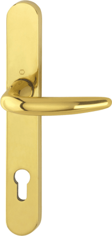 HOPPE Drückergarnitur Atlanta M1530/3357N, Langschild, oval, Profilzylinder gelocht, Entfernung 92mm, Vierkant 8mm, DIN Links-Rechts, Türstärke 67 - 72mm, mit Stütznocken, messingfarben poliert-Resista®, festdrehbar