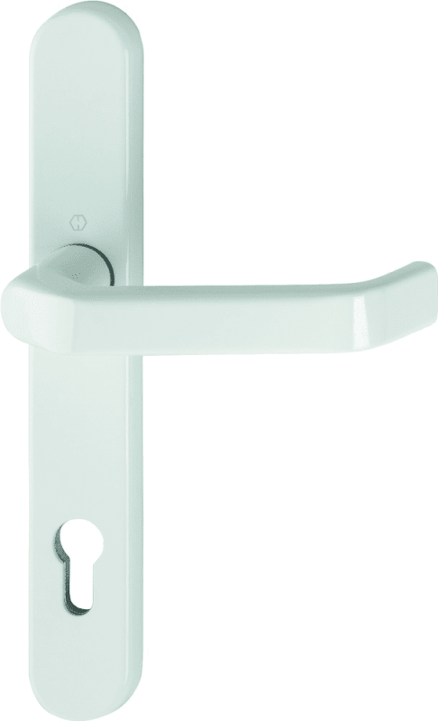 HOPPE Halbgarnitur Liverpool 1313G/3357N, Langschild, oval, Profilzylinder gelocht, Entfernung 92mm, Vierkant 8mm, DIN Links-Rechts, mit Stütznocken, verkehrsweiß beschichtet, wartungsfreies Gleitlage