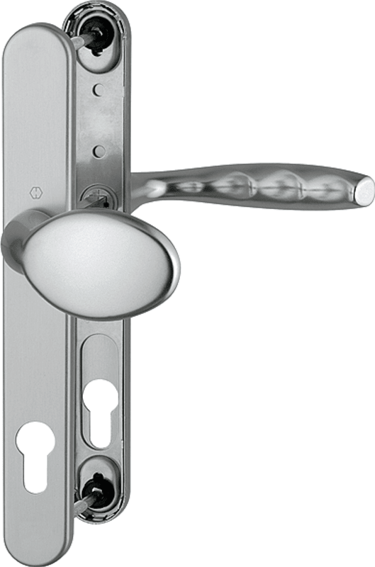 HOPPE Wechselgarnitur New York 76G/3346/1810, Langschild, oval, Profilzylinder gelocht, Entfernung 92mm, Vierkant 8mm, DIN Links-Rechts, Türstärke 67 - 72mm, mit Stütznocken, stahlfarbig eloxiert, fes