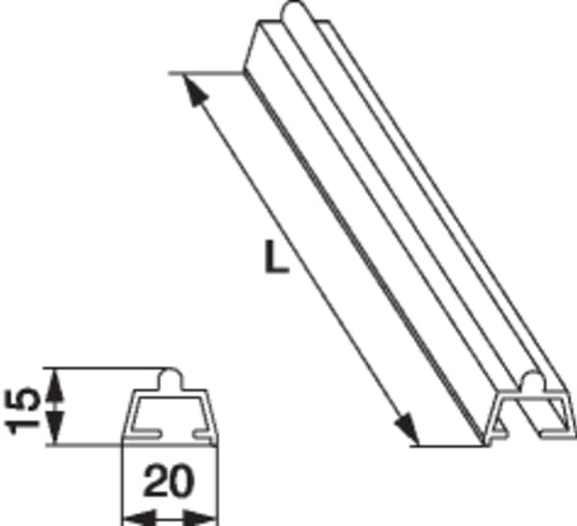 Laufschiene HS-TT hoch in Alu Versatz 0 für Laufschienenhöcker H=15mm L=6.500mm silber