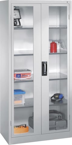 Werkzeug- und Materialschrank, mit 4 verstellbaren Einlegeböden • Langlebige Stahlblechkonstruktion • Material: Stahlblech mit hochwertiger Einbrennbeschichtung • Sichtfenster: 3-mm-Acrylglas • Türen