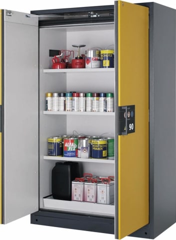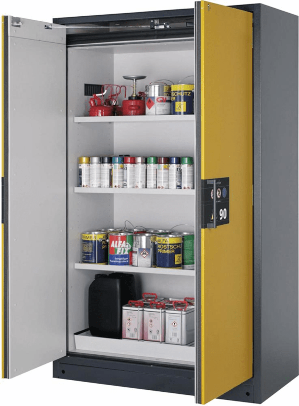 Hinweis: Zur sicheren Lagerung von Gefahrstoffen in Arbeitsräumen gemäß DIN EN 14470-1 und TRGS 510.