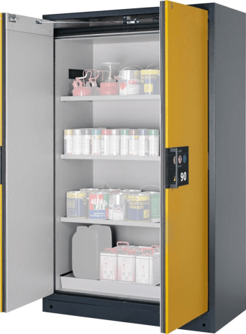 Hinweis: Zur sicheren Lagerung von Gefahrstoffen in Arbeitsräumen gemäß DIN EN 14470-1 und TRGS 510.